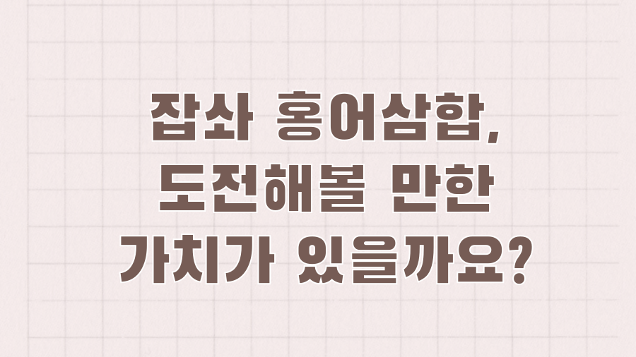 오늘 잡솨 홍어삼합에 대해 자세히 알아봤는데요. 톡 쏘는 홍어, 아삭한 묵은지, 부드러운 수육의 삼박자를 집에서 즐길 수 있다는 점이 정말 매력적이지 않나요?