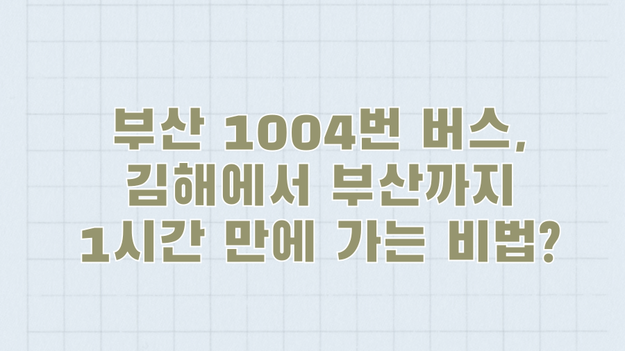 김해에서 부산으로 향하는 여러 버스 노선 중, 오늘은 제가 애용하는 1004번 버스에 대해 자세히 알아보겠습니다.