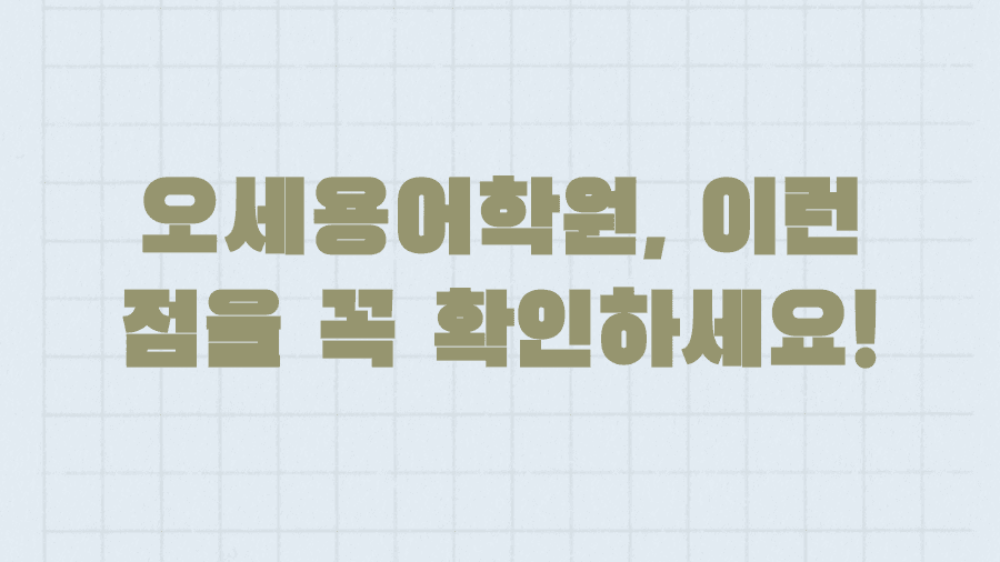 더불어 ‘오세용어학원’을 선택하기 전에 꼭 알아야 할 팁들과 상담 시 확인해야 할 사항들도 상세히 안내해 드릴 테니, 끝까지 주목해 주세요.