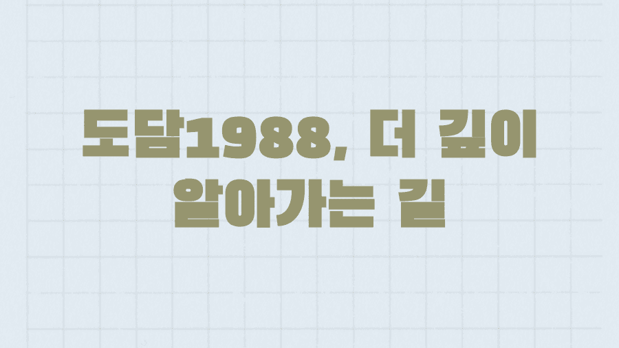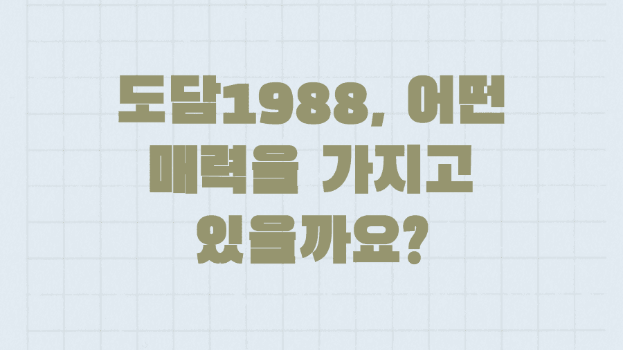 마치 숨겨진 보물을 찾듯, '도담1988'에 대한 모든 궁금증을 해소하고 여러분의 호기심을 만족시켜 드릴 것을 약속드립니다. 이제 '도담1988'의 세계로 함께 떠나보시죠!