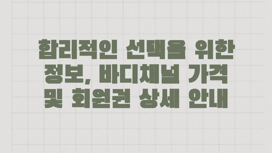 그래서 준비했습니다. 바디채널 서울 지점 정보부터 다채로운 프로그램, 회원권 혜택, 그리고 실제 이용자들의 생생한 후기까지, 바디채널에 대한 모든 것을 꼼꼼하게 파헤쳐 여러분의 현명한 선택을 돕겠습니다. 지금부터 바디채널과 함께 건강한 변화를 시작할 준비, 되셨나요?