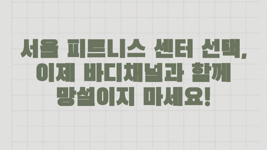 서울 피트니스 센터 선택, 이제 바디채널과 함께 망설이지 마세요!