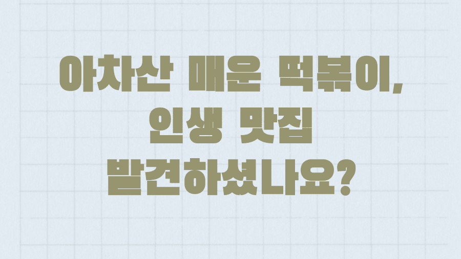 SNS에서만 보던 그 맛집, 과연 명성만큼 맛있을지, 어떤 메뉴를 시켜야 후회 없을지, 또 합리적인 가격으로 즐길 수 있는지 궁금하시죠? 여러분의 궁금증을 속 시원하게 풀어드릴 아차산 매운 떡볶이 탐험, 지금 바로 시작합니다. 꼼꼼한 정보와 솔직한 후기를 바탕으로, 여러분의 다음 외식 장소를 결정하는 데 든든한 길잡이가 되어드릴 것을 약속드립니다.