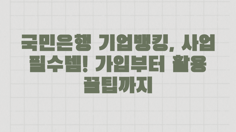 사업 자금을 효율적으로 관리하고 싶으신가요? 번거로운 은행 업무를 간편하게 처리하고 싶으시다면, 국민은행 기업뱅킹 서비스가 해답이 될 수 있습니다.많은 중소기업 대표님들과 실무 담당자들이 이미 국민은행 기업뱅킹을 통해 시간과 노력을 절약하며 사업 운영의 효율성을 높이고 있습니다.하지만 처음 이용하시거나, 기존 사용 중 궁금한 점이 있다면 막막하게 느껴지실 수도 있습니다.이 글에서는 국민은행 기업뱅킹을 처음 시작하시는 분들을 위해 가입부터 로그인, 그리고 실제 업무에 유용한 주요 기능까지 상세하게 알려드립니다.또한, 국민은행 기업뱅킹을 더욱 스마트하게 활용할 수 있는 꿀팁과 주의사항, 그리고 문제 발생 시 신속하게 도움받을 수 있는 고객센터 정보까지, 여러분이 국민은행 기업뱅킹을 마스터하는 데 필요한 모든..